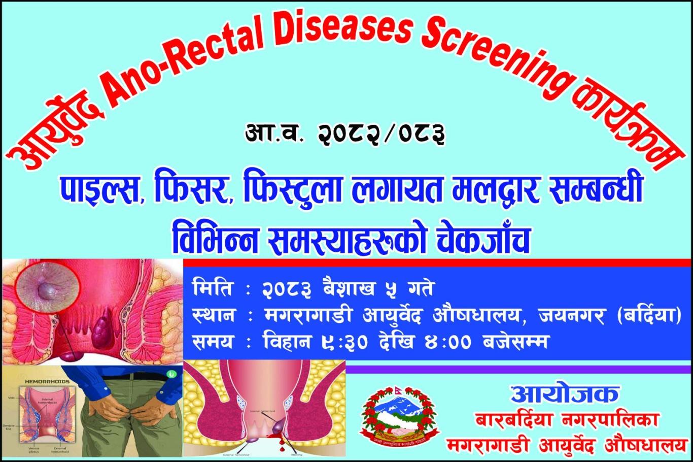 » आयवेद Ano-Rectal Diseases Screening कार्यक्रम ।