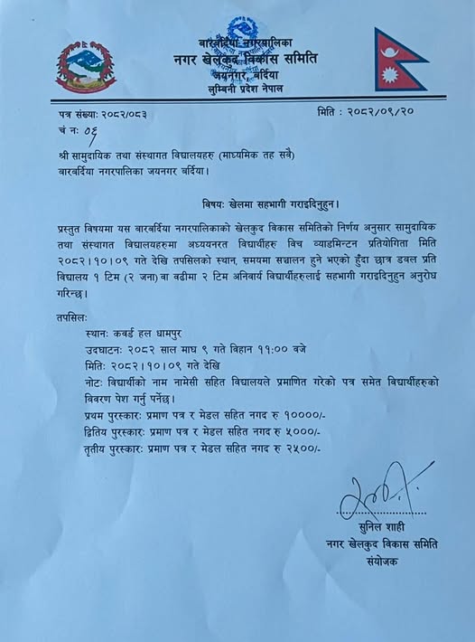 » खेलमा सहभागी गराइदिनुहुन । 2082-09-20