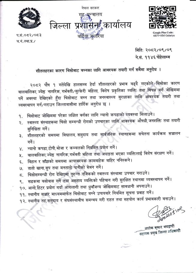 » जिल्ला प्रशासन कार्यालय गुलरिया, बर्दियाको अनुरोध ।