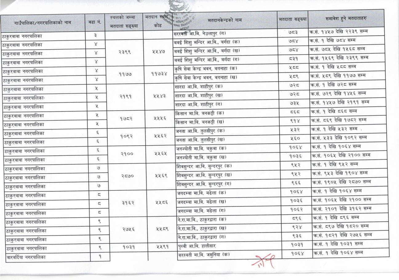 मतदान स्थल तथा मतदान केन्द्र कायम ।