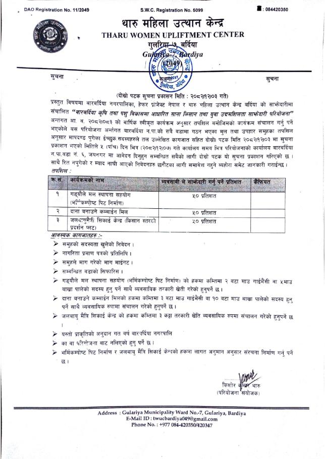(दोस्रो पटक सुचना प्रकासन मिति २०८२।१२।०३ गते)