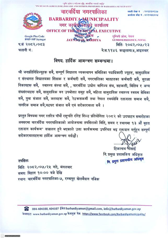 हार्दिक आमन्त्रण सम्बन्धमा ।