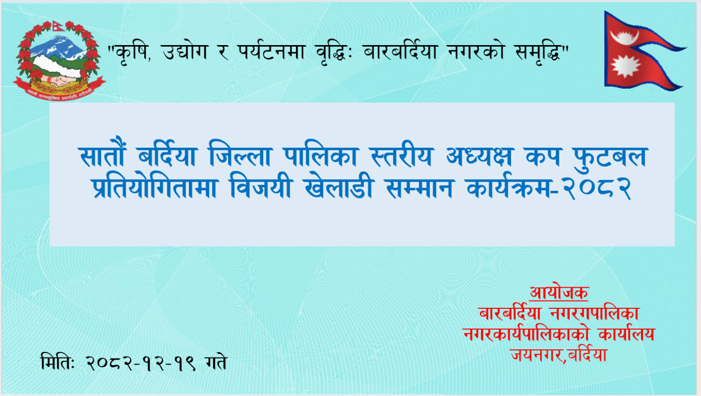 सातौं बर्दिया जिल्ला पालिका स्तरीय अध्यक्ष कप फुटबल प्रतियोगितामा विजयी खेलाडीहरुलाई सम्मान कार्यक्रम-२०८२