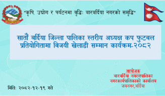 सातौं बर्दिया जिल्ला पालिका स्तरीय अध्यक्ष कप फुटबल प्रतियोगितामा विजयी खेलाडीहरुलाई सम्मान कार्यक्रम-२०८२
