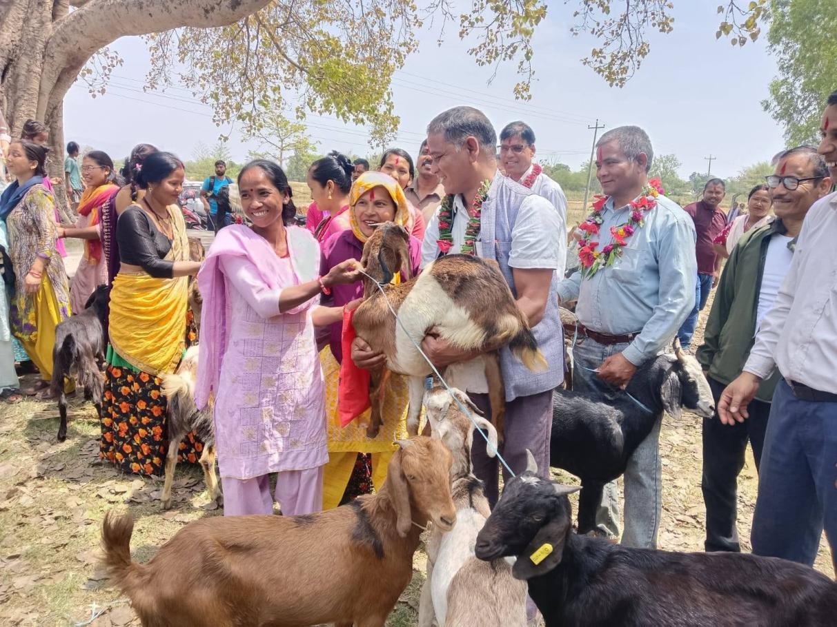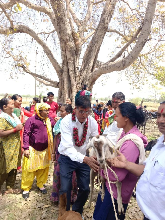 मिति २०८२ साल चैत्र २९ गतेका दिन बारबर्दिया नगरपालिकाद्बारा सञ्चालित बारबर्दिया नगरपालिका र हेफर प्रोजेक्ट नेपालको आर्थिक सहयोग साथै थारु महिला उत्थान केन्द्रको सहजिकरणमा कृषि तथा पशु विकासमा आधारित साना किसान तथा युवा उद्यमशिल्ता साझेदारी परियोजनाबाट गठित स्वावलम्वि कृषक समूह सदस्यलाई विउँ बाख्रा उपहार कार्यक्रम बारबर्दिया नगरपालिका आर्थिक विकास समितिका संयोजक श्री राम फेरन थारु ज्यूको अध्यक्षता, नगर उपप्रमुख श्री रत्न कुमारी पाण्डे ज्यूको प्रमुख आतिथ्य, नगर प्रवक्ता, वडा अध्यक्ष, वडा सदस्य, कर्मचारी, थारु महिला उत्थान केन्द्रका कर्मचारी, बारबर्दिया सामाजिक उद्यमी महिला सहकारी संस्था लि