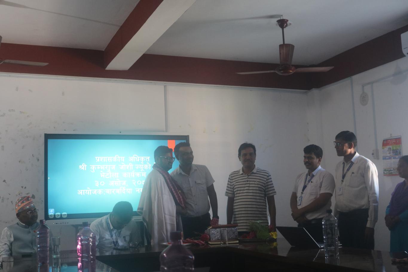 ३०,असोज २०८२ बारबर्दिया नगरपालिका प्रशासन शाखाका प्रशासकीय अधिकृत श्री कुम्भराज जोशी सरको फेरी भेटौँला कार्यक्रम नगरपालिकाका प्रमुख प्रशासकीय अधिकृत श्री गौतम भण्डारी ज्यूको अध्यक्षता, नगर प्रमुख श्री छविलाल थारु ज्यूको प्रमुख आतिथ्य र शाखा प्रमुख / कर्मचारीहरुको सहभागितामा सम्पन्न ……