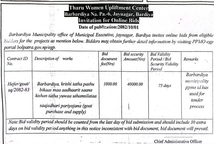 अनलाइन बोलपत्र आह्वान सम्बन्धी सूचना । २०८२-१०-०६