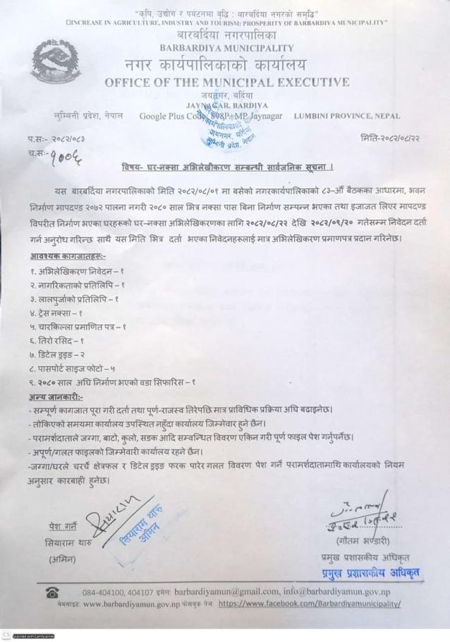 » -घर-नक्सा अभिलेखीकरण सम्बन्धी सार्वजनिक सूचना ।