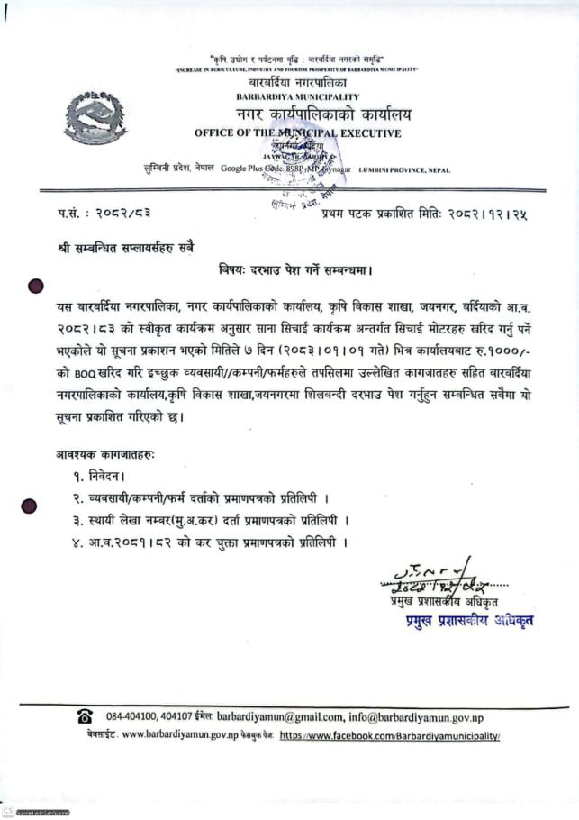 दरभाउ पेश गर्ने सम्बन्धमा।