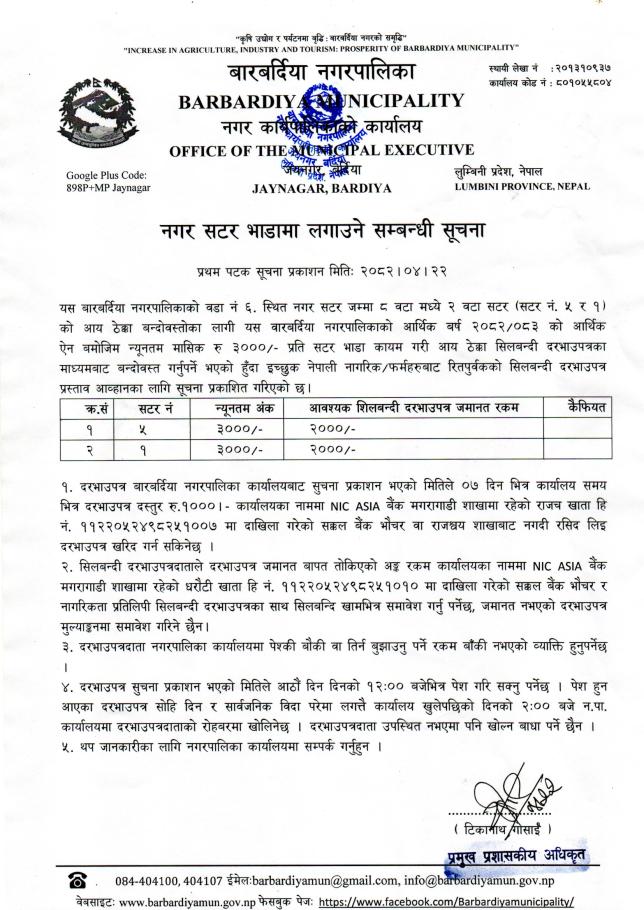 » नगर सटर भाडामा लगाउने सम्बन्धी सूचना ।