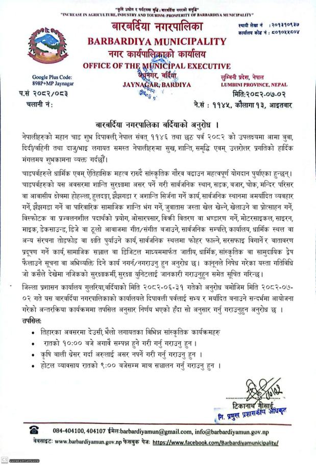 बारबर्दिया नगरपालिका बर्दियाको अनुरोध ।