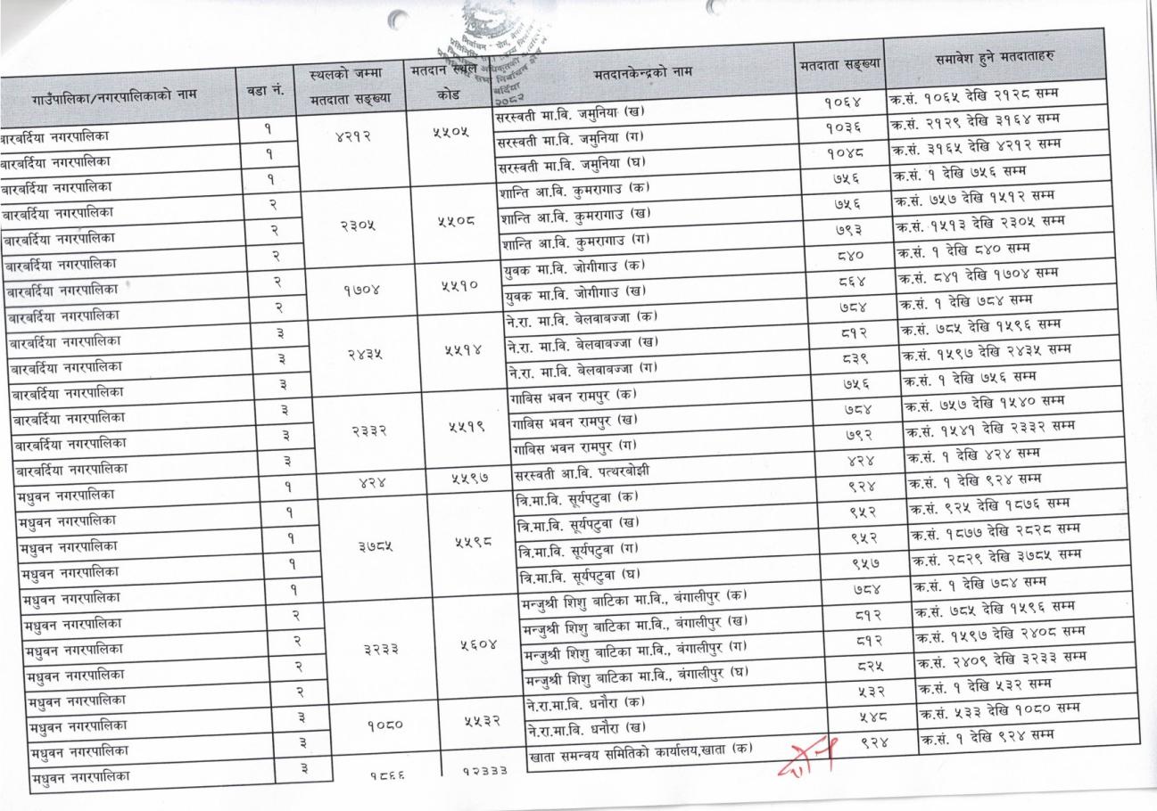 मतदान स्थल तथा मतदान केन्द्र कायम । प्रतिनिधि सभा सदस्य निर्वाचन क्षेत्र नं. २ राजापुर, बर्दिया ।
