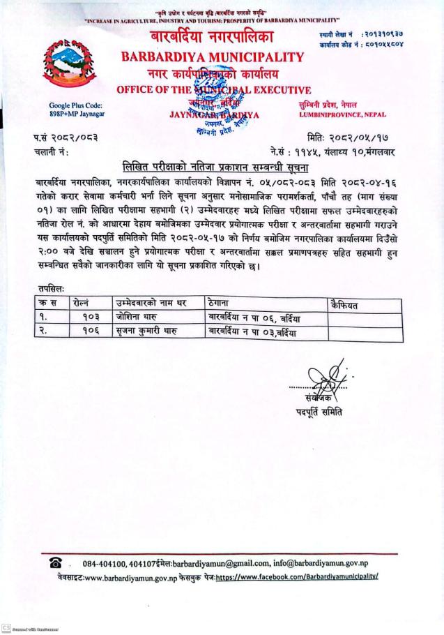 » लिखित परिक्षाको नतिजा प्रकाशन सम्बन्धी सूचना ।