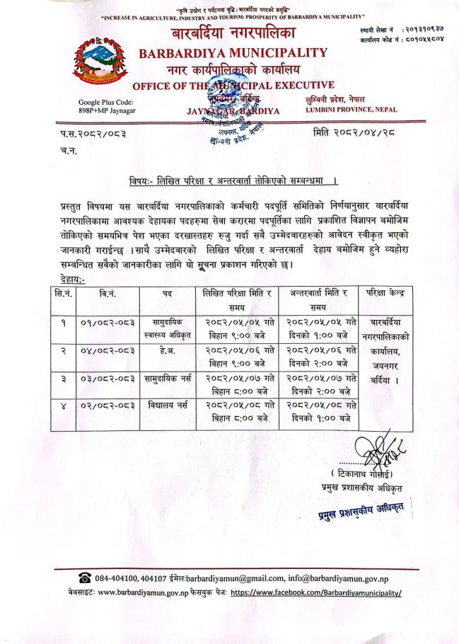 » लिखित परीक्षा र अन्तरवार्ताको मिति तोकिएको सम्बन्धमा ।