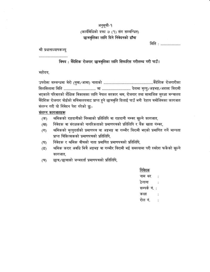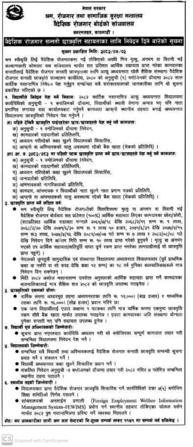 वैदेशिक रोजगारी सन्तति छात्रवृत्ति कार्यक्रम सम्बन्धी सूचना ।।