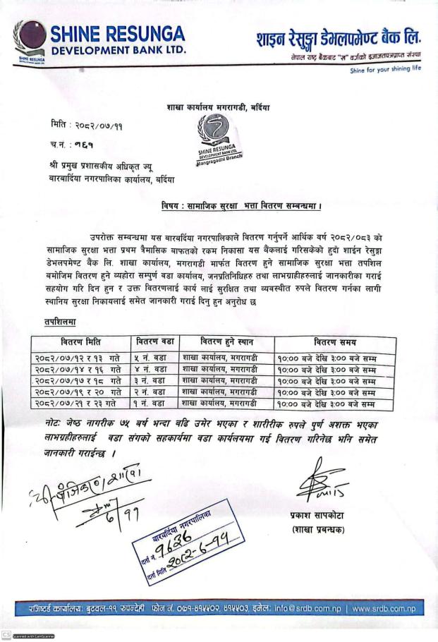 » सामाजिक सुरक्षा भत्ता वितरण सम्बन्धमा । 2082-07-11