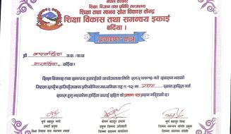 शिक्षा विकास तथा समन्वय इकाइको आयोजनामा भएको जिल्ला स्तरीय हाजिर जवाफ प्रतियोगितामा यस बारबर्दिया नगरपालिकालाई प्रथम स्थान ल्याउन सफल बनाउने विद्यार्थी रिदिमा खरेल ,जेनिश रिजाल र बसन्ती बुढालाइ सामाजिक विकास समिति संयोजक श्री श्याम कुमारी चौधरी ज्यूबाट