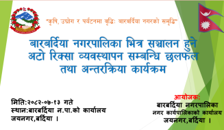 आज मिति २०८२/०८/२६ गतेका दिन यस बारबर्दिया नगरपालिकाको चालु आर्थिक वर्ष २०८२/०८३ को पहिलो चौमासिक सम्मको सार्वजनिक सुनुवाई कार्यक्रम सम्पन्न गरियो ।